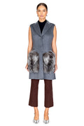 Double-Faced Wool Vest W/ Fox Fur Hem Trim