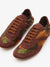 The Roadie Upholstered Sneaker combines soft suede with golden-green botanical jacquard panels, creating a textured, refined look. Its low-profile rubber sole adds a subtle, grounded touch, blending athletic minimalism with artisanal craftsmanship for a sophisticated style.