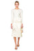 The Lisel skirt epitomizes understated elegance with its construction from luxuriously soft yellow silk organza, fully lined for comfort and movement. A gentle drape creates a flattering silhouette, while an invisible side zipper ensures a seamless finish. Hand-embroidered daisies cluster near the hem, their yarn stems and delicate ribbon detail evoking the charm of a freshly gathered bouquet. A refined piece that balances whimsy with sophistication.