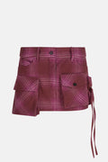Elevate your wardrobe with this sophisticated burgundy flannel cargo mini skirt. Crafted from soft flannel fabric, it features a classic plaid pattern and large cargo pockets, combining style with functionality. Its tailored fit and versatile design make it perfect for both casual outings and polished autumn looks.