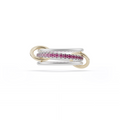 The Tigris SG Pink Ombre combines a central band of u-pavé pink ombre sapphires with sterling silver bands, elegantly linked by 18k yellow gold connectors. Handmade in Los Angeles, this lightweight piece offers refined craftsmanship and a graceful design that elevates any look with subtle color and timeless sophistication.