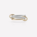 The Tigris SG features a central band of delicate u-pavé white diamonds totaling .70 carats, bordered by precisely matched bands of lustrous 18k yellow gold. Linked by orbiting 18k gold connectors, this handcrafted piece from Los Angeles offers a refined, lightweight design that elevates any look with subtle luxury and timeless elegance.