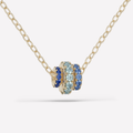 The Vesta YG Bleu Necklace showcases three elegant full-round annulets crafted from 18k yellow gold, accented with pavé-set white diamonds and striking blue gemstones totaling 0.61 carats. Measuring 18 inches with a discreet 16-inch adjustable link, this handcrafted piece from Los Angeles blends timeless luxury with refined versatility, perfect for elevating any sophisticated ensemble.