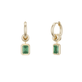 The Zahra Hoop Earrings in 18K yellow gold combine elegant simplicity with refined detail. Each hoop features three delicate annulets, with a central drop charm showcasing a 1.00CT emerald-cut emerald, adding graceful movement and vibrant contrast. Individually handmade in Los Angeles, these earrings offer a timeless design that complements any sophisticated wardrobe.