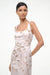 The Zoe Dress is an elegant floral brocade midi perfect for refined occasions. It features a fitted square neckline that flatters the décolletage, a delicate tie at the waist to enhance your silhouette, and a tulip-shaped skirt that moves gracefully. This dress combines classic structure with feminine details for a timeless, sophisticated look.
