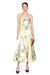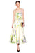 Cascading lilac wisteria blooms tumble across a soft lime canvas in this enchanting midi dress, evoking the serene beauty of a sun-drenched spring garden. The sophisticated A-line silhouette is anchored by delicate shoulder straps and an elasticated ruched back for a flattering fit, while an invisible zip closure maintains the dress's polished aesthetic. Fully lined for comfort and confidence, it arrives with a matching floral belt to complete the look. Perfect for garden parties, spring events, or anyone seeking an effortlessly elegant statement piece.