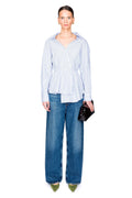 Elevate your wardrobe with this refined long sleeve button-down shirt, designed with an elegant off-the-shoulder collar that strikes the perfect balance between casual sophistication and contemporary style. The structured button-front closure provides versatility for layering or wearing solo, while the graceful neckline draws attention upward with understated charm. Crafted for those who appreciate subtle design details, this piece transitions seamlessly from office settings to evening occasions, offering a polished silhouette that feels both modern and timeless.