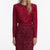 Burgundy lace top with diamanté crystal trim and structured shoulder pads. Features a back zip closure and true-to-size fit with minimal stretch. Unlined design pairs effortlessly with denim or skirts for refined, versatile style.