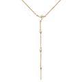 Yellow gold drop lariat necklace with diamonds.