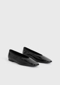 These minimalist croco-embossed flats blend timeless elegance with subtle texture. Crafted from patent leather and fully lined for comfort, they gracefully mold to your feet over time. Perfect for slipping under fluid trousers, they add a refined touch to any outfit with effortless sophistication.