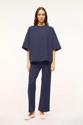 Elevate your travel wardrobe with the Capsule Top. Made from luxurious ponte fabric, this oversized crewneck shirt features a sophisticated rib neck trim. Pair it with our Knack Pant for the ultimate travel day outfit. Effortlessly chic and comfortable - the perfect combination.