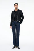 The Marino Jacket combines refined tailoring with everyday versatility. This cropped silhouette features a structured woven cotton blend that drapes beautifully while maintaining its shape. The center front zipper offers effortless styling, while adjustable snap cuffs provide a polished finish. Perfect for layering over dresses or pairing with high-waisted trousers, this jacket elevates any ensemble with understated elegance and timeless appeal.
