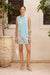 The Azar Mini Dress captures effortless elegance in a crisp light blue silhouette. This sleeveless design features a classic round neckline and streamlined straight cut that flatters with understated simplicity. Delicate embroidered appliqués depicting whimsical sketches add an artistic touch, transforming the piece from minimalist to distinctly memorable. Perfect for warm-weather occasions where refined style meets playful personality.