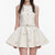 Romantic charm meets street-wise edge in this cream mini dress, where delicate broderie anglaise detailing softens a contemporary silhouette. The skater-style skirt offers playful movement, while a tonal belt defines the waist for a polished finish. Crafted from stretch fabric and featuring an exposed back zip, this piece transitions effortlessly from festival grounds to evening occasions.