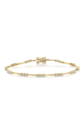 Crown-set diamonds frame elegant tapered bars in this refined eternity bracelet, creating a seamless flow of light around your wrist. Diamond accents grace the secure box clasp, adding the perfect finishing touch. Crafted in 14K gold with .48CT of diamonds, this timeless piece balances classic design with contemporary sophistication—a versatile essential for any jewelry collection.