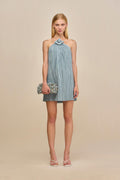 The Kano Dress features a distinctive origami plissé design with a knotted fabric accent that graces its strapless neckline. Crafted with a built-in corset, this mini-length dress offers a flattering, structured fit that enhances your silhouette. Perfect for elegant occasions, its sophisticated style combines architectural detail with modern minimalism.