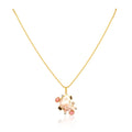 Delicate lilac kitten paw adorned with a luminous halo of carved pink conch shell cabochons, smoky quartz, pink topaz, and white sapphires. A pink sapphire graces the reverse, while handcrafted gold settings and bail showcase meticulous artistry. The piece features a charming gold punched heart backing—a signature detail that captures both whimsy and refinement in one enchanting pendant.
