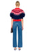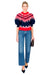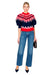 The Marty Sweater features a bold red and blue fairisle pattern with voluminous balloon sleeves that blend classic design with modern style. This short-sleeve knit works beautifully layered or worn alone, making it an effortless choice for any occasion.