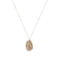 This one-of-a-kind necklace celebrates the beauty of nature and luxury combined. A naturally smooth green and orange beach pebble serves as the centerpiece, thoughtfully adorned with .25CT of precious stones set in 18K gold. Each piece is unique, capturing the serene simplicity of coastal treasures elevated with fine jewelry craftsmanship. A distinctive statement for those who appreciate the harmony between organic beauty and timeless elegance.